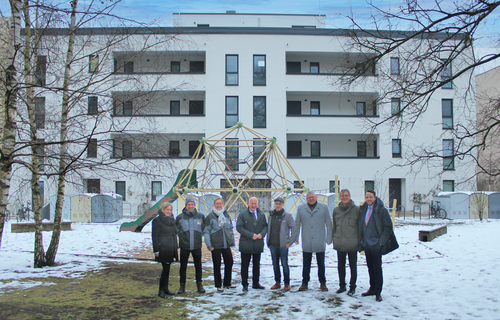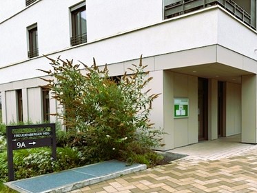 Treffpunkt - Meller Bogen 32 - vor dem Eingang - Wiese