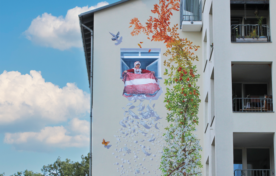 Was ist denn mit der Brandwandgestaltung im Michelstadter Weg 49 im Rahmen des Förderprojektes Großsiedlung Hakenfelde - Mein Mitmach- und Begegnungs-Kiez, fragten uns einige Bewohner. Im Februar und März 2023 führte die Charlotte eine Bewohnerbefragung zum Motiv der Brandwandgestaltung durch. Das Ergebnis war überwältigend und eindeutig: von 490 Rücksendungen stimmten 421 für das Motiv „Natur“. Am 19.06.2023 begann der Gerüstaufbau und die anschließenden Malerarbeiten als Vorbereitung für die spätere künstlerische Gestaltung. Schon zwei Wochen später waren die ersten Grundrisse des späteren Motivs deutlich erkennbar und am 21.06.2023 beendeten die Künstler der Creativen Stadt ihr Werk. Das Ergebnis kann sich sehen lassen und bietet den Anwohnern und Spaziergängern einen echten Hingucker anstatt einer kahlen Wand.
