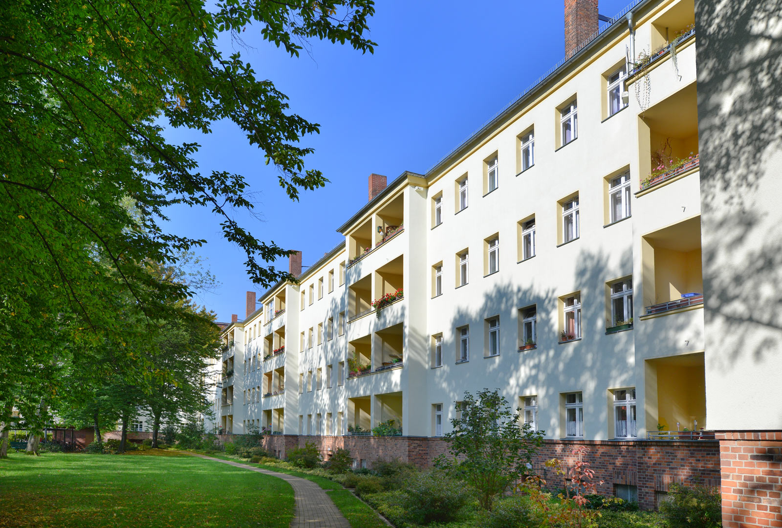 Unsere Wohnungen finden Sie in der Bergstraße 17-28, Filandastraße 13-15, Lauenburger Straße 48-56 (gerade), Lessingstraße 1, 1a, 2, 9-13 und in der Wuthenowstraße 10-14. Alle Objekte stellen modernisierte Altbauten mit großzügigen Treppenhäusern und liebevoll begrünten Innenhöfen dar. Von hier aus laufen Sie nur wenige Minuten zu Fuß zur Schloßstraße - oder Sie nehmen einfach einen der viel Buslinien, die direkt vor der Haustür fahren. Und für unsere Mitglieder steht auch hier eine Gästewohnung zur Anmietung für Besucher zur Verfügung.