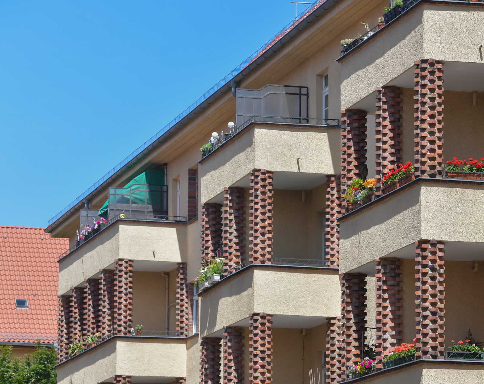 Heute zeigen sich die Häuser in neuem alten Glanz: innen moderner Wohnkomfort, außen denkmalgerechte Gestaltung. Begrünte Innenhöfe und Spielplätze fördern die nachbarschaftliche Kommunikation ebenso wie unser CharlotteTreff in der Meyerbeerstraße/Ecke Mutziger Straße 1, den wir in Kooperation mit dem FreiZeitHaus e.V. betreiben.