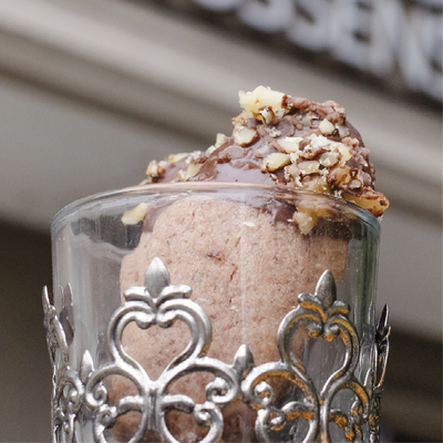 Mächtig steht es da, das Gebäude mit der Geschäftsstelle der Charlotte. Es strahlt Bodenständigkeit und Zuverlässigkeit aus. Kein Wunder. Beherbergt es doch das Schalten und Walten der Baugenossenschaft, die sich voller Wärme, Kraft und Deutlichkeit das Vertrauen ihrer Mieter verdient hat – in seiner Tradition, stets mit einem offenen Ohr für die Themen der Mieter da zu sein. Dies findet sich in der Ehrlich- und Kernigkeit der Haselnuss wieder. Die Schokolade steht für alle Formen des Vertrauens und mit der Walnuss wird die Klarheit unterstrichen, mit der die Baugenossenschaft für seine Nutzer eintritt. Die Form erinnert ein bisschen an eine Bärentatze und unterstreicht auch hier nochmal den beschützenden Charakter des Gebäudes.