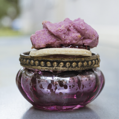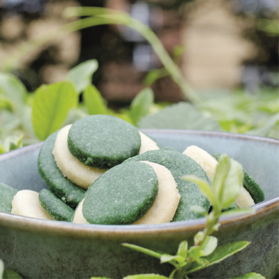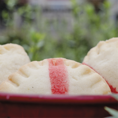 Eine kolossale Tanne wird wohlwollend von den hellen Gebäuden der Kollatzstraße umrahmt. Ihr dunkles Grün findet sich in den Türen der Häuser wieder. Aufgrund der mächtigen Tannenpräsenz kommt man sich tatsächlich ein wenig wie im Wald vor. Wie wunderbar mitten in der Stadt zu sein und dennoch das erfrischende Walderholungsgefühl zu spüren, einfach, indem man nach Hause geht. So findet sich im Keks nicht nur das dunkle Grün, sondern auch der echte Waldgeschmack der Weißtanne mit Preiselbeeren und Honig, um dieses Gefühl eines Waldbesuches auch auf der Zunge zu haben.