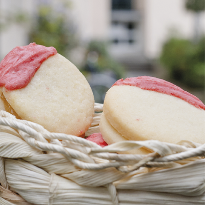 Unsere Gebäude der Filandastraße strahlen Wärme und Wohlbehagen aus. Diese Wärme strahlt einem direkt ins Herz, so wie ein Sonnenstrahl durchs Laubdach einem ein Lächeln ins Gesicht zaubert. Genauso vermittelt die Aprikose als Sonnenfrucht Wärme und Geborgenheit. Im Inneren zeigt das Haus punktuell die kräftige Herzfarbe Rot, das findet sich im rosa Pfeffer wieder. Zudem verleiht dieser dem Keks ein bisschen Schärfe, denn bei aller Wärme weiß das Haus seine Bewohner wohl gut zu schützen gegen die Widrigkeiten des Außen.