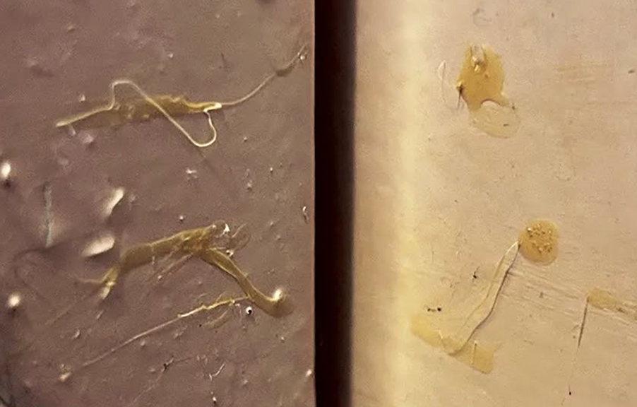Seien Sie außerdem wachsam, wenn Ihnen im oder am Haus etwas Ungewöhnliches auffällt. Vermehrt finden wir Fäden vor, die mit einer Heißklebepistole an die Wohnungstüren geklebt werden (siehe Foto), um die Einbrüche vorzubereiten.