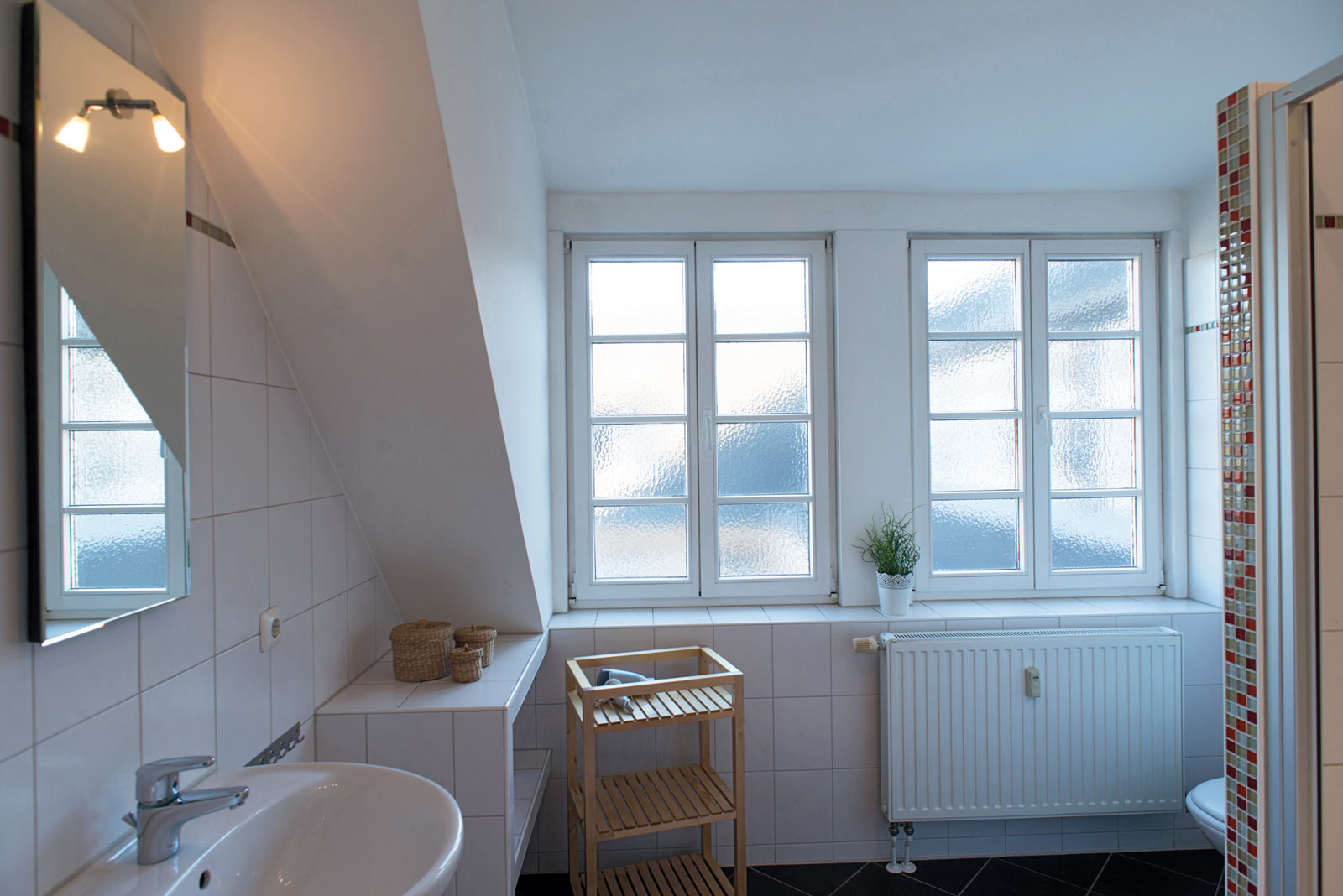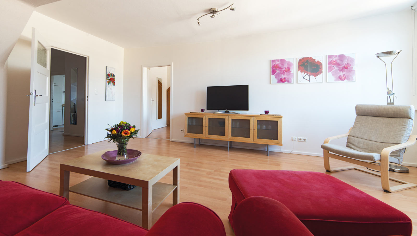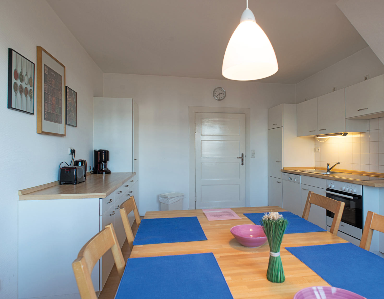 Die Gästewohnung befindet sich im Dachgeschoss unserer Geschäftsstelle. Ein Aufzug ist vorhanden. Auf rund 73 m² (verteilt auf zwei Zimmer, Küche, Duschbad) können Sie Ihre Gäste unterbringen bzw. selbst bei einem Berlin-Besuch übernachten. Das Schlafzimmer ist mit einem Doppelbett und einem Uhrenradio ausgestattet. Im Wohnzimmer können zwei weitere Personen auf einer Ausziehcouch nächtigen. Fernseher und Ventilator sind vorhanden. In der Küche bietet sich Platz zum Kochen: Einbauherd, Geschirrspülmaschine, Wasserkocher, Toaster, Kaffeemaschine sowie diverses Geschirr (inkl. Töpfe, Pfanne) sind vorhanden. Handtücher und Bettwäsche sind nicht vorhanden. Jetzt neu: inklusive WLAN!